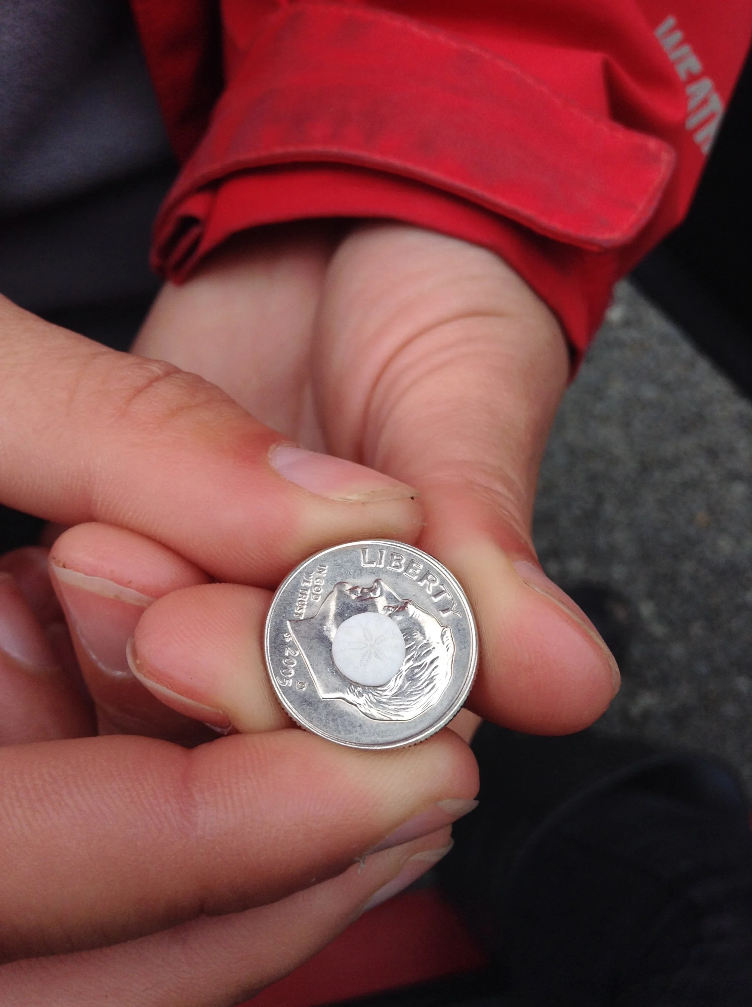 Juvenile sand dollar shell on a dime (photo credit: Katie Corliss)