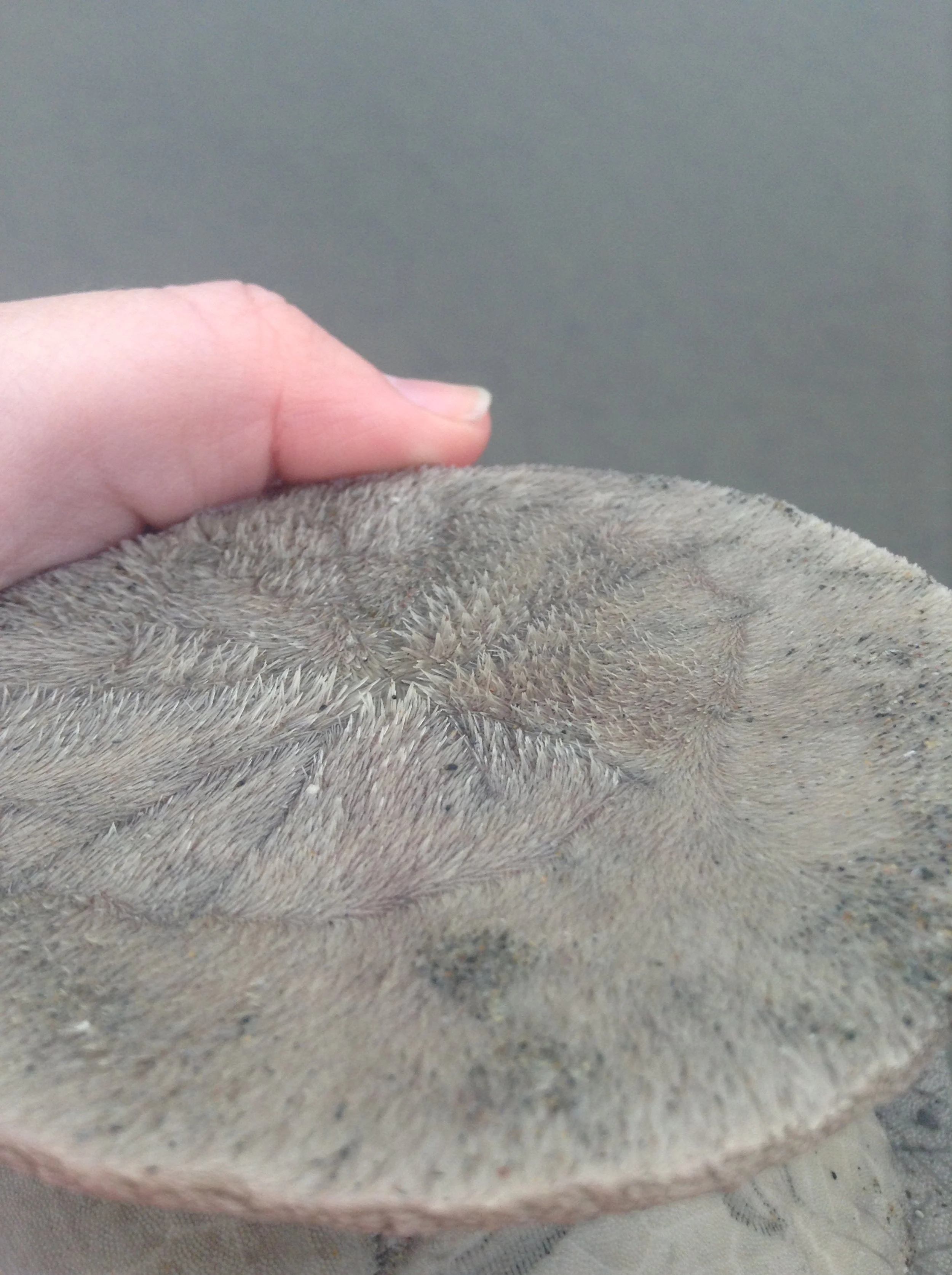 Live sand dollar underside showing tube feet (photo credit: Katie Corliss)