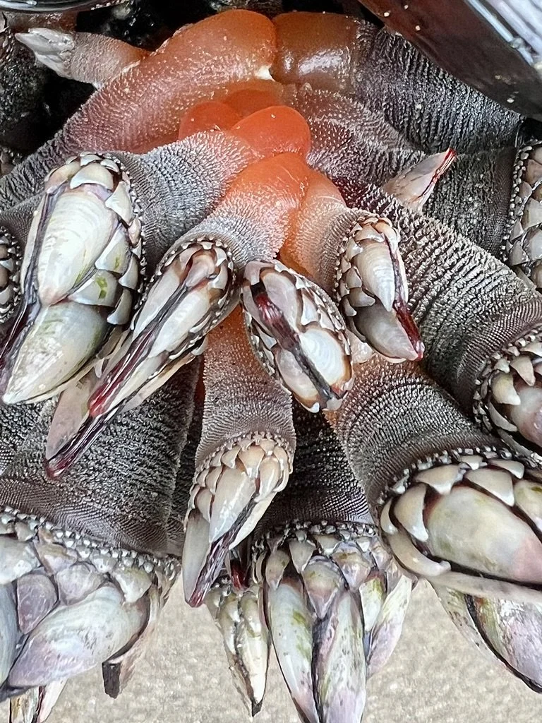 Indigenous populations along coastlines have long harvested these edible gooseneck barnacles; apparently, the flesh within the stalk tastes similar to lobster.