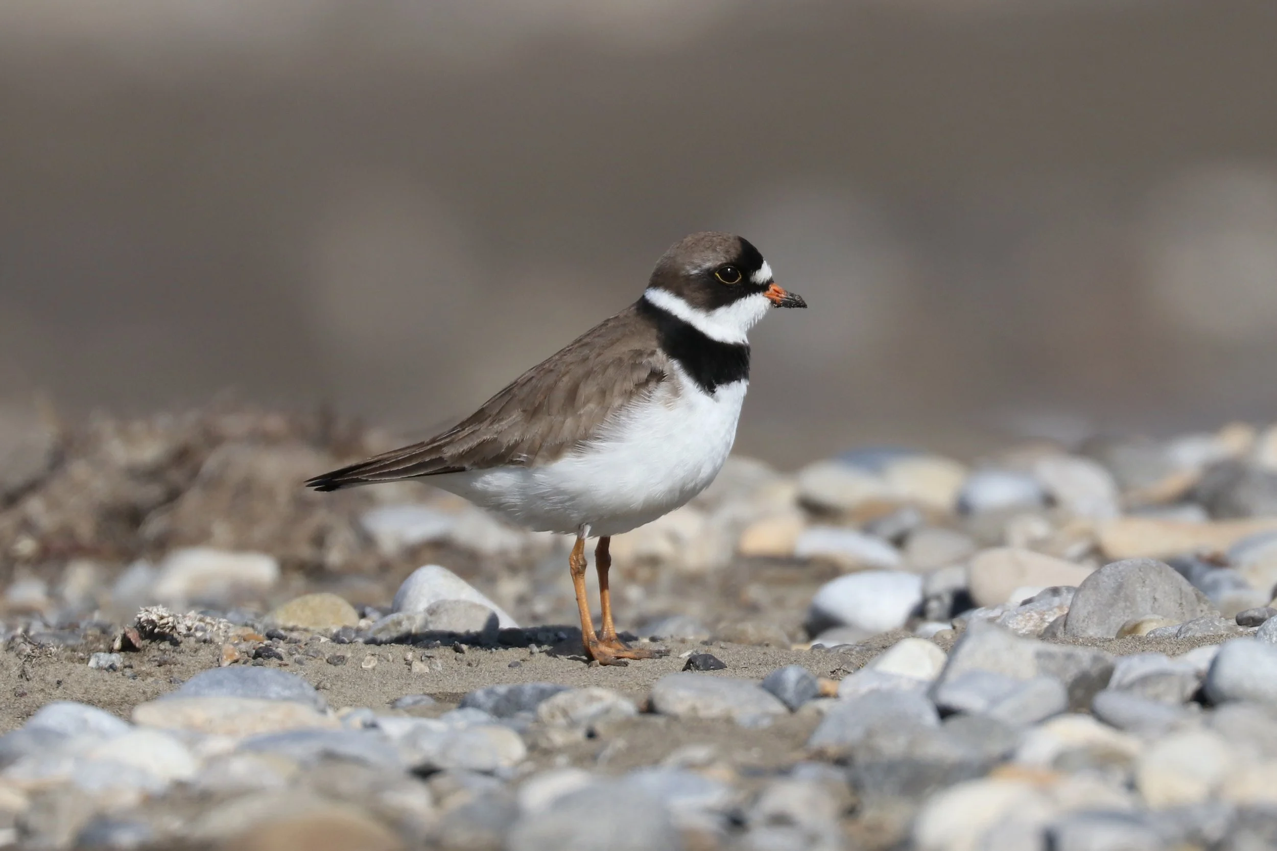 Description: Semipalmated plovers are a tiny shorebird. They have yellow legs and a short beak that is yellow at the base and black at the tip. They have a white underside and a brown back with a black stripe wrapping around their neck. Plovers are smaller and have a shorter beak than most shorebirds found on the Oregon Coast. Although they have similar markings to their relative the snowy plover, they are a dark brown rather than dusty gray. They forage in large groups on the shore and are known to mingle with other species.