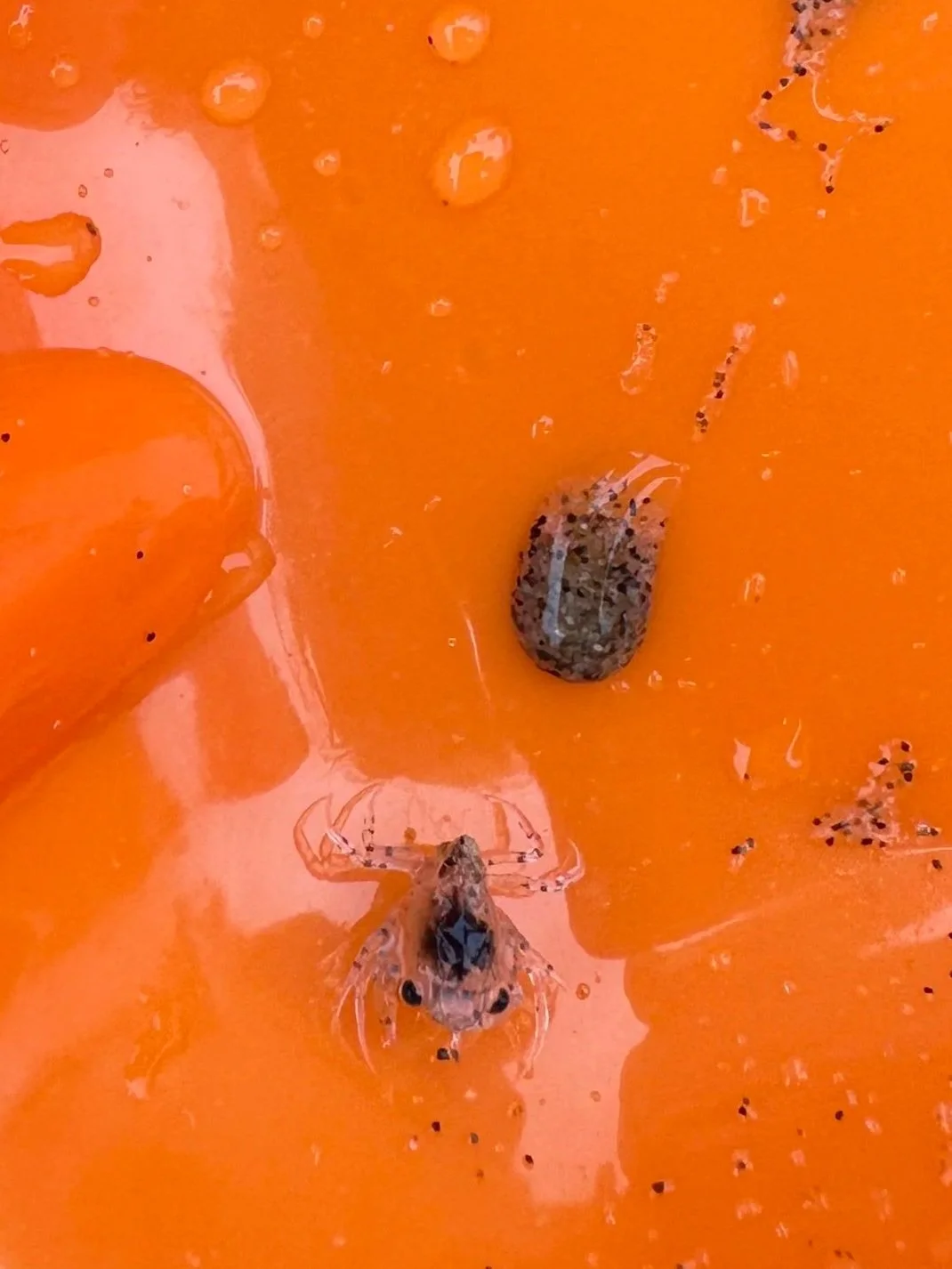 Pelagic megalope (larval crab) in a visitors shovel (photo credit: Dani Nielsen)